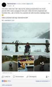 Informacja o tym, że Arek pokonał drogę do Morskiego Oka na wózku inwalidzkim opublikowana została na popularnej stronie „Tatromaniak” w serwisie Facebook.