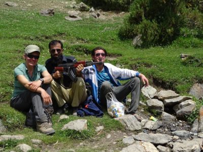 Trekking do bazy pod Nanga Parbat. Podobno okolica jest obecnie bezpieczna, ale jednak miejscowy policjant z bronią w ramach obstawy poszedł z nimi. I dobrze, bo, jak zauważa Monika, robił za przewodnika. Kałasza używał tylko do zdjęć, więc wszyscy zastanawiali się czy towarzyszył im  z nudów (i dla napiwku, który dostał), czy rzeczywiście ochrona była potrzebna (ale chyba nie…).